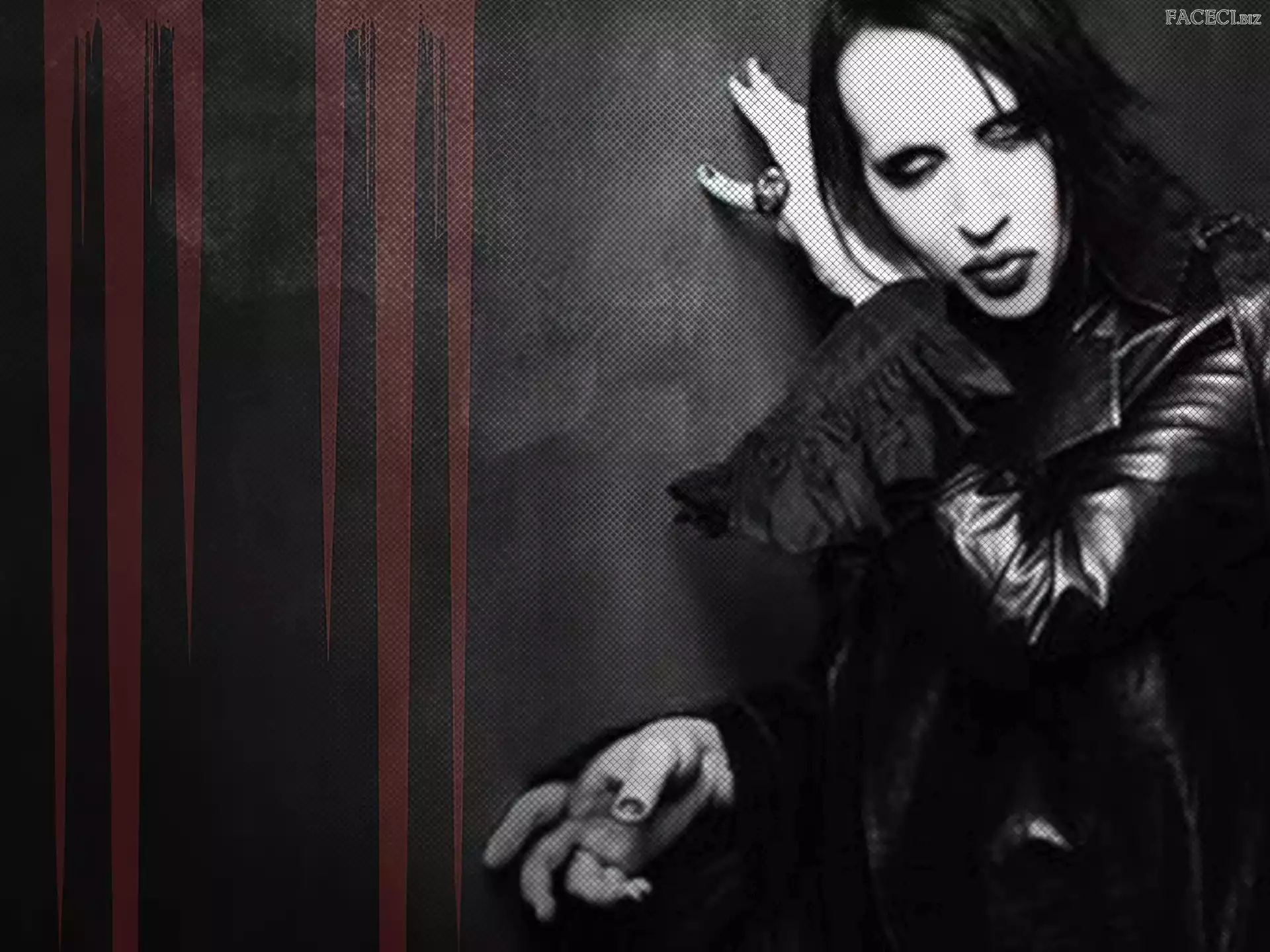 Brian Hugh Warner Makijaż, Marilyn Manson, Ostry Brian Hugh Warner Makijaż, Marilyn Manson, Sygnet Oko, Marilyn Manson, Szklane Marilyn Manson Gwiazda, Marilyn Manson, Czerwona Twarz, Marilyn Manson, Czarna Okno, Marilyn Manson Twarz, Marilyn Manson Marilyn Manson, Mężczyzna Marilyn Manson, Brian Hugh Warner, Kapelusz, Czerwony Rękawiczka, Czarna, Język, Marilyn Manson, Zęby Marynarka, Marilyn Manson